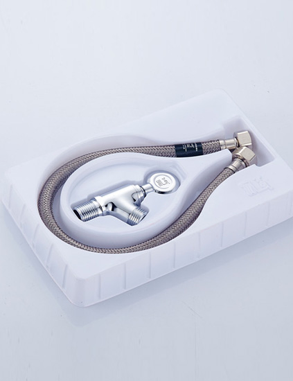 馬桶專用角閥主體出水螺紋采用前傾式結構,安裝更方便,軟管不易折彎,軟管流量更大,壽命更長。馬桶專用軟管編織絲采用晴綸材質,耐腐蝕,抗酸堿,壽命長。采用兩段式慢開閥芯結構,流量大,水壓衰減小,使馬桶衝洗後能快速進水,進行再次衝洗